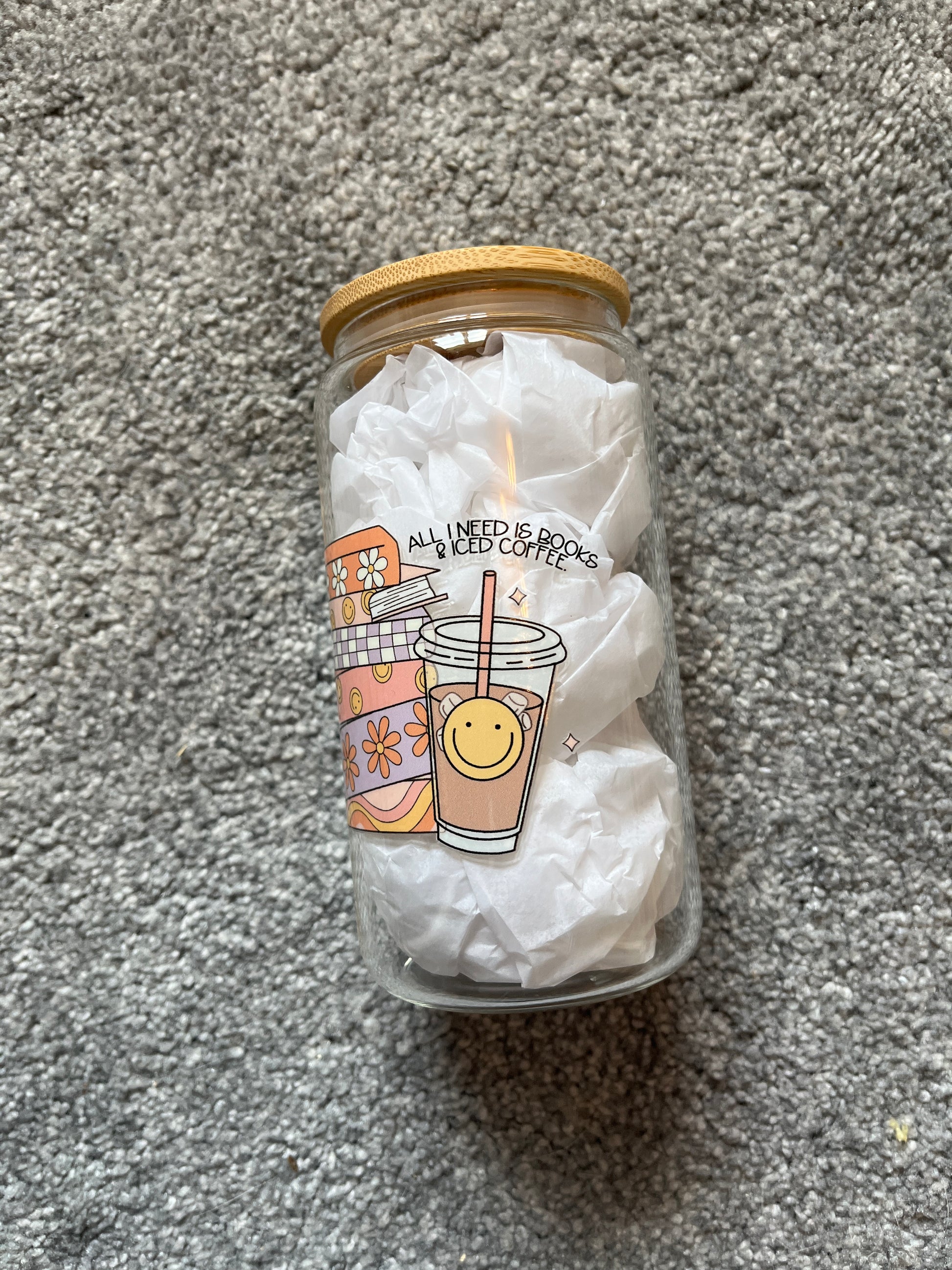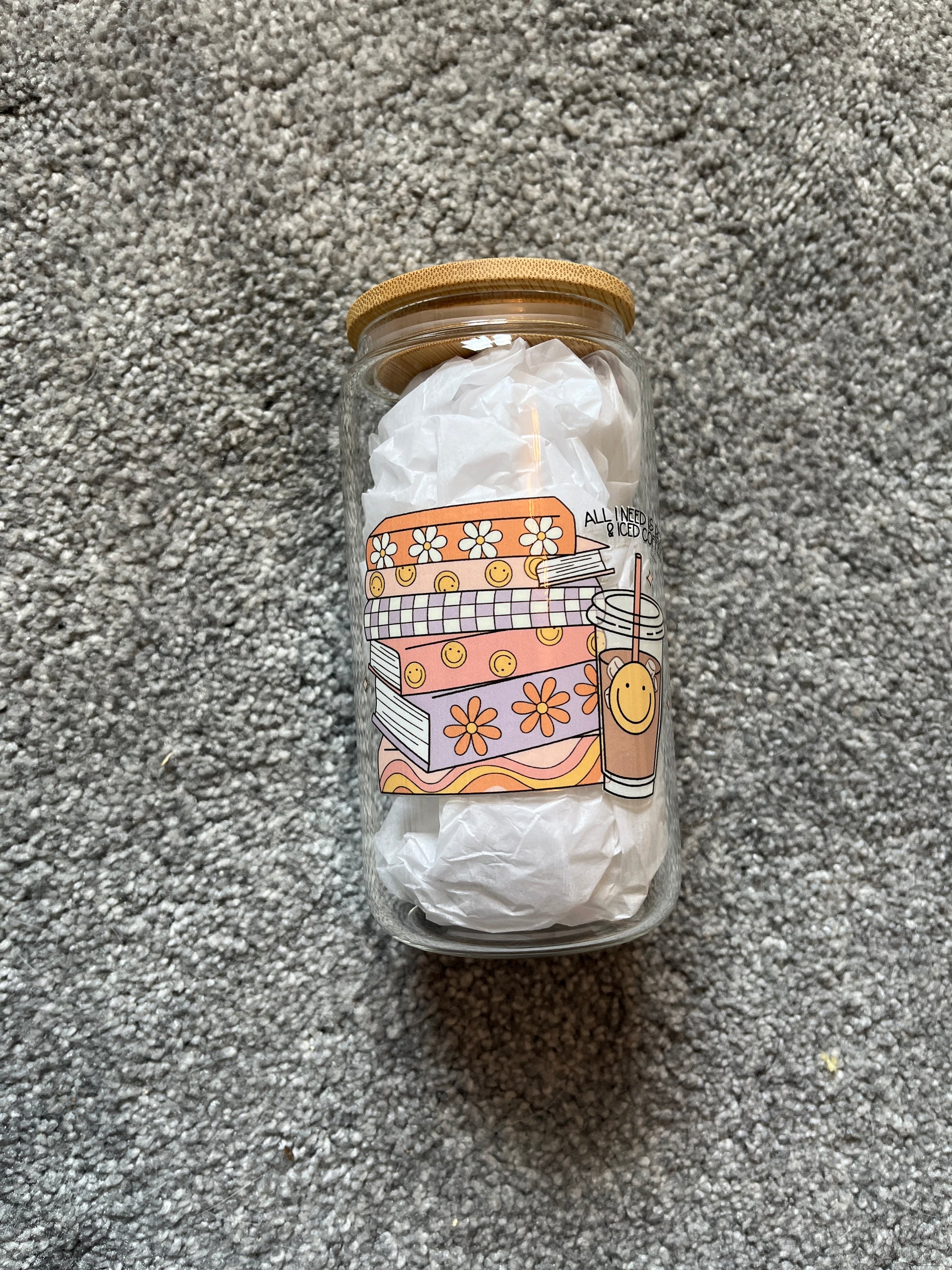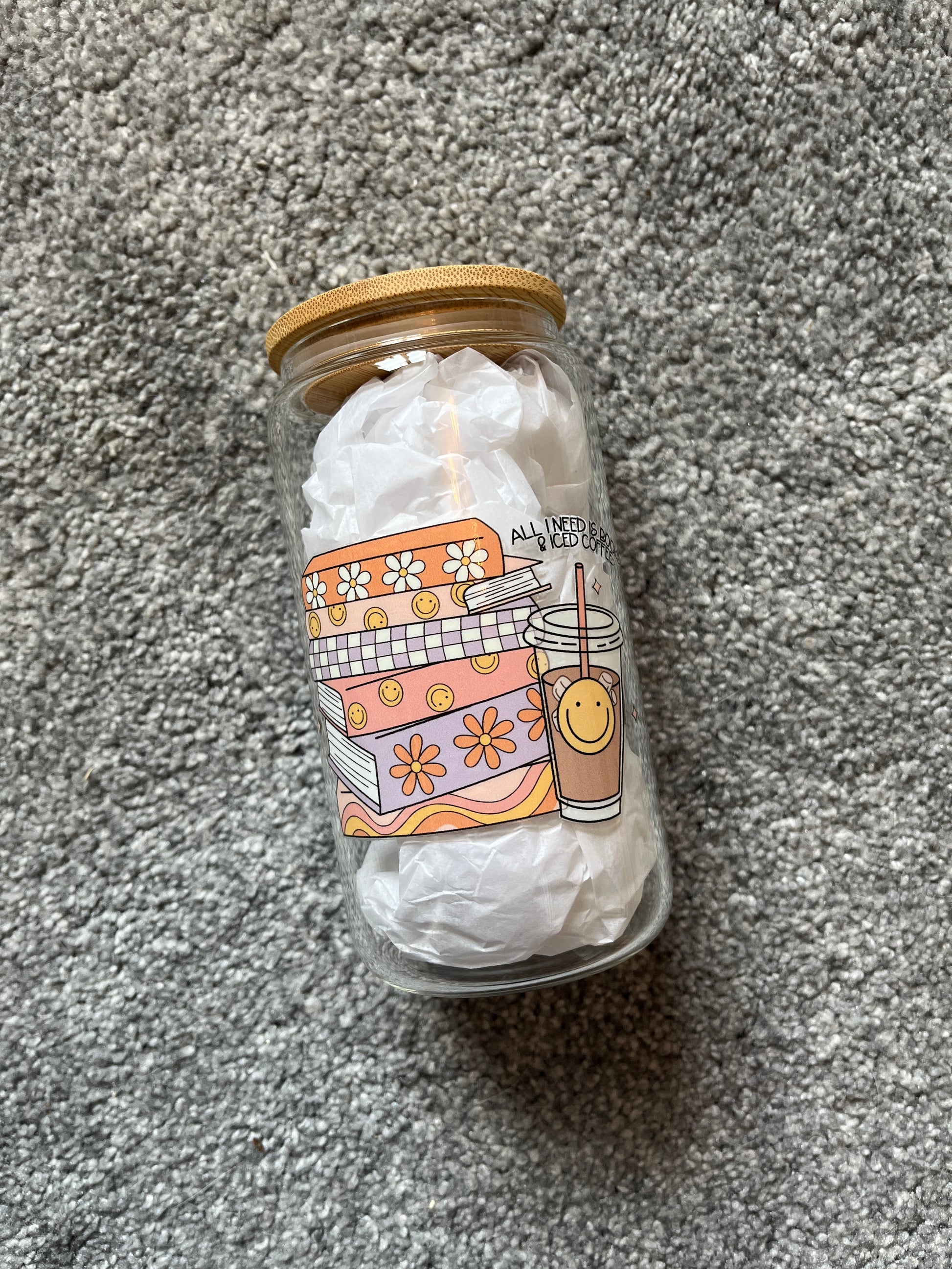 Our 16oz All I Need Glass Can is your BFF for those long, lazy days with a book. This ain't just any cup; it's your ticket to chilled vibes and bookish adventures. Comes with a snazzy bamboo lid & straw, 'cause we're all about that eco-chic life. Get your cute Libbey drinkware and turn your coffee o'clock into a page-flipping journey. Let's make staying hydrated and well-read the coolest trend of the season! 🌞📖