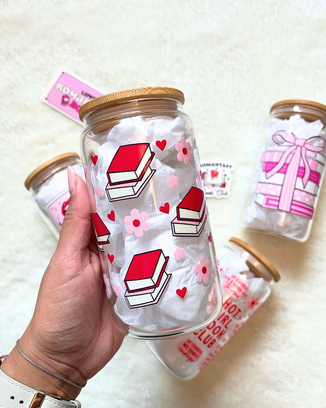 The Books and Daisies glass is the cutest addition to Manor+Breeze, smothered in perfectly pink daisies and cute book stacks. It's the only glass you need for February