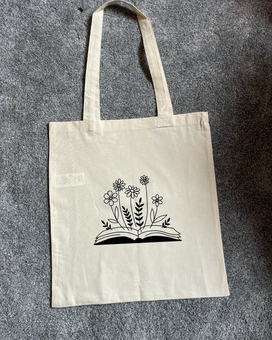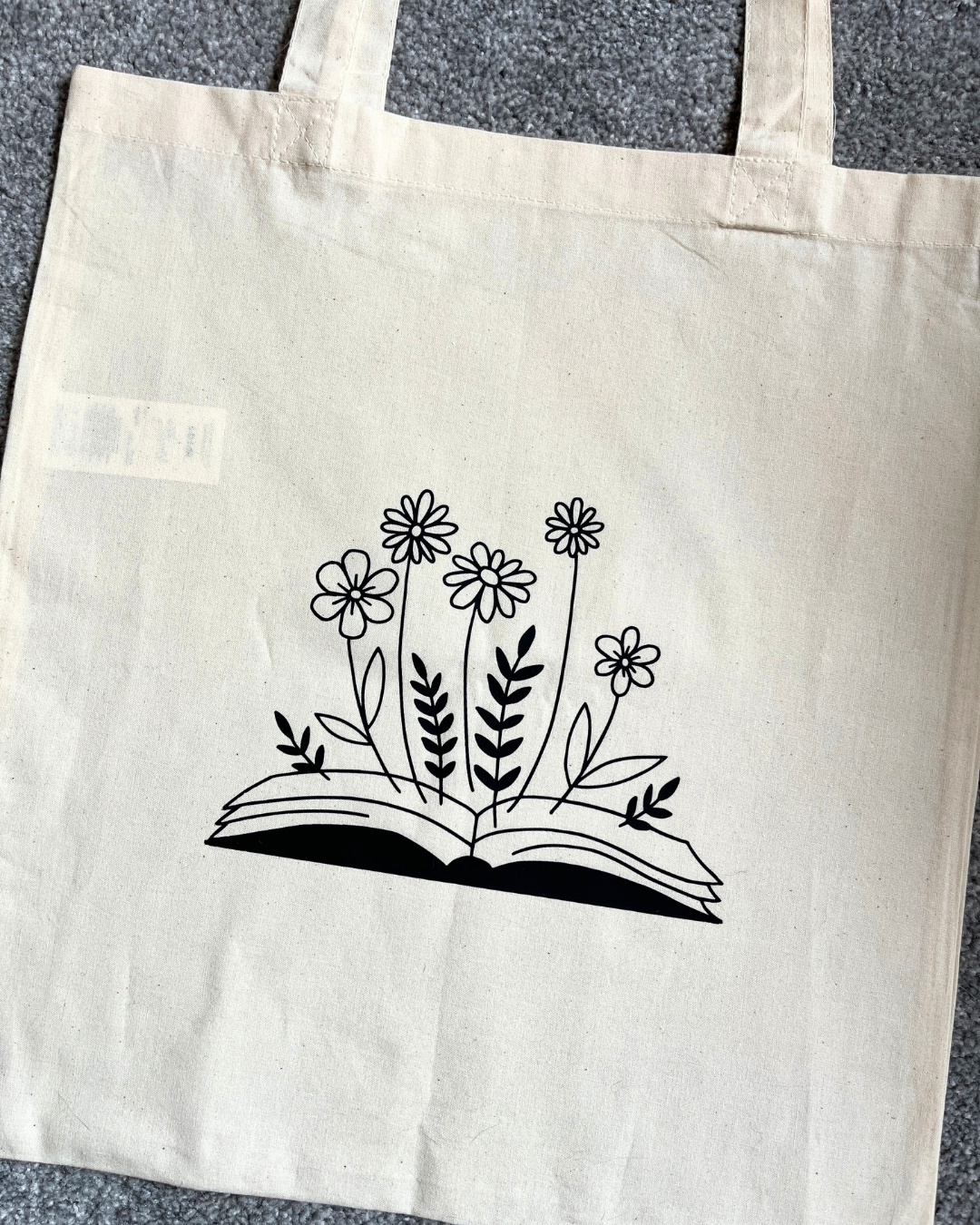 This Books and Flowers tote bag is the perfect accessory for any book lover who wants to carry their essentials in style. Made from 100% natural cotton, this bag is both durable and eco-friendly.