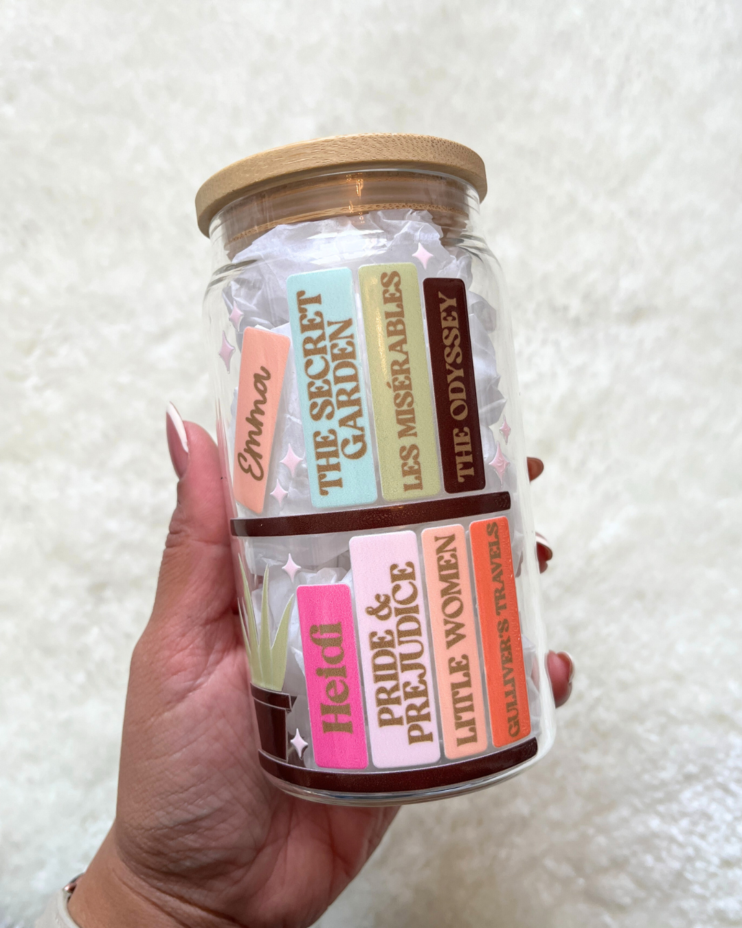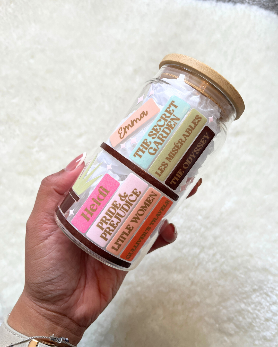 This is one for my babes who love the classics (I will forever be a Pride and Prejudice girl). Show your love for the classics with this glass can showcases 8 of the classic books that the world could never forget.