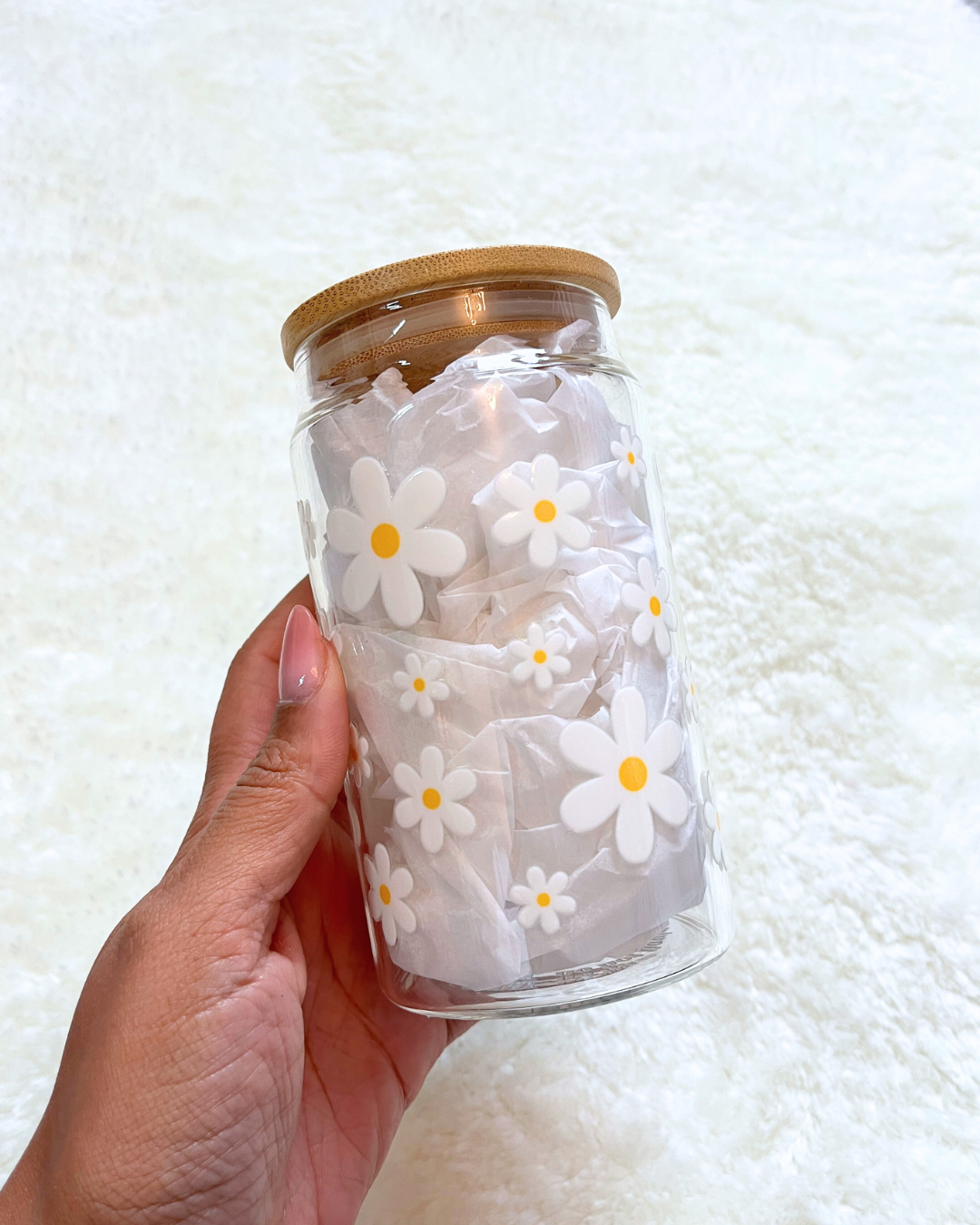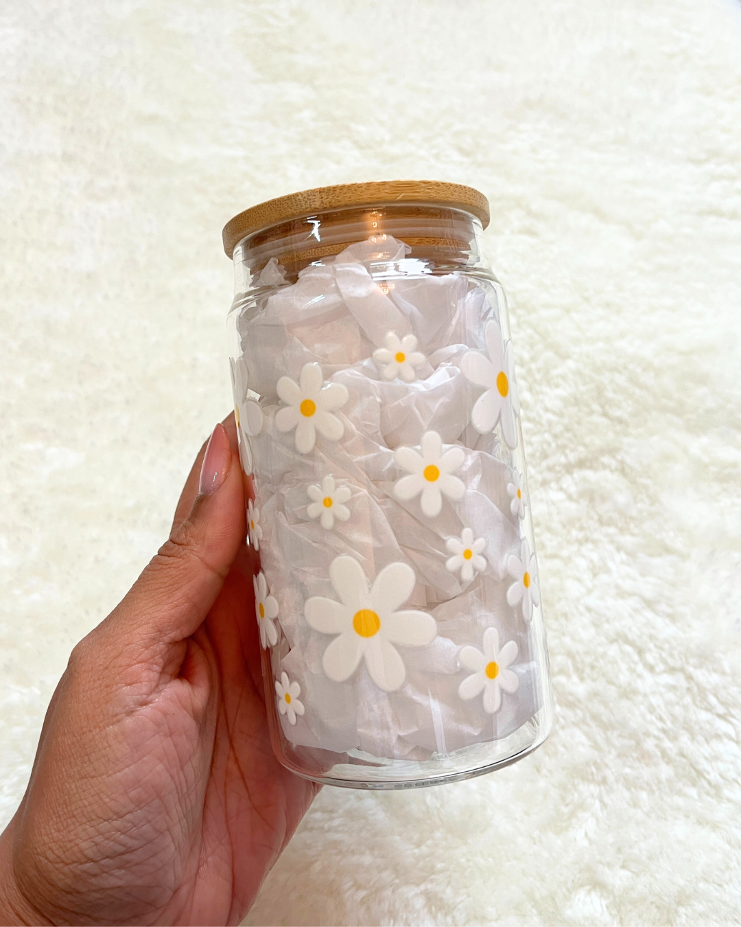 Daisies Glass Can