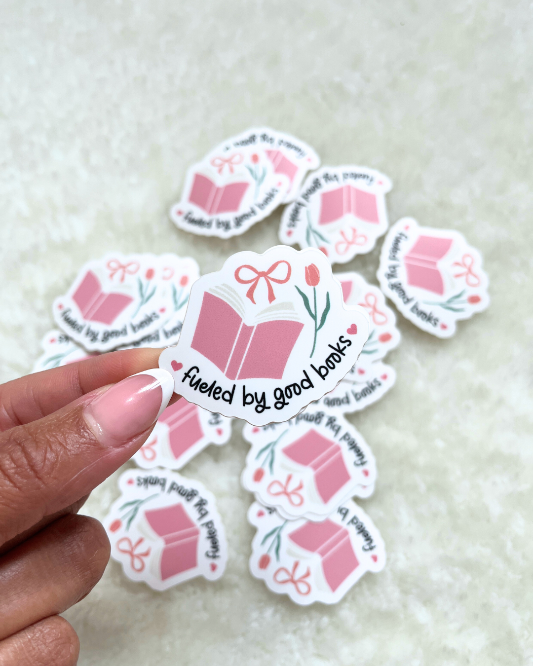 The sticker is around 5cm x 5cm so is perfect to stick on your kindle, notebook, or anywhere you want to show off your love for books!