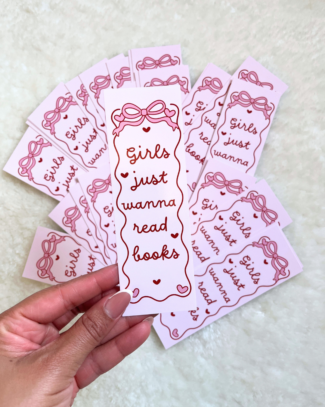 Girls just wanna read books. Preferably in silence, in a cute cabin in the woods, with a cuppa and a puppy to cuddle. But this bookmark will have to do.