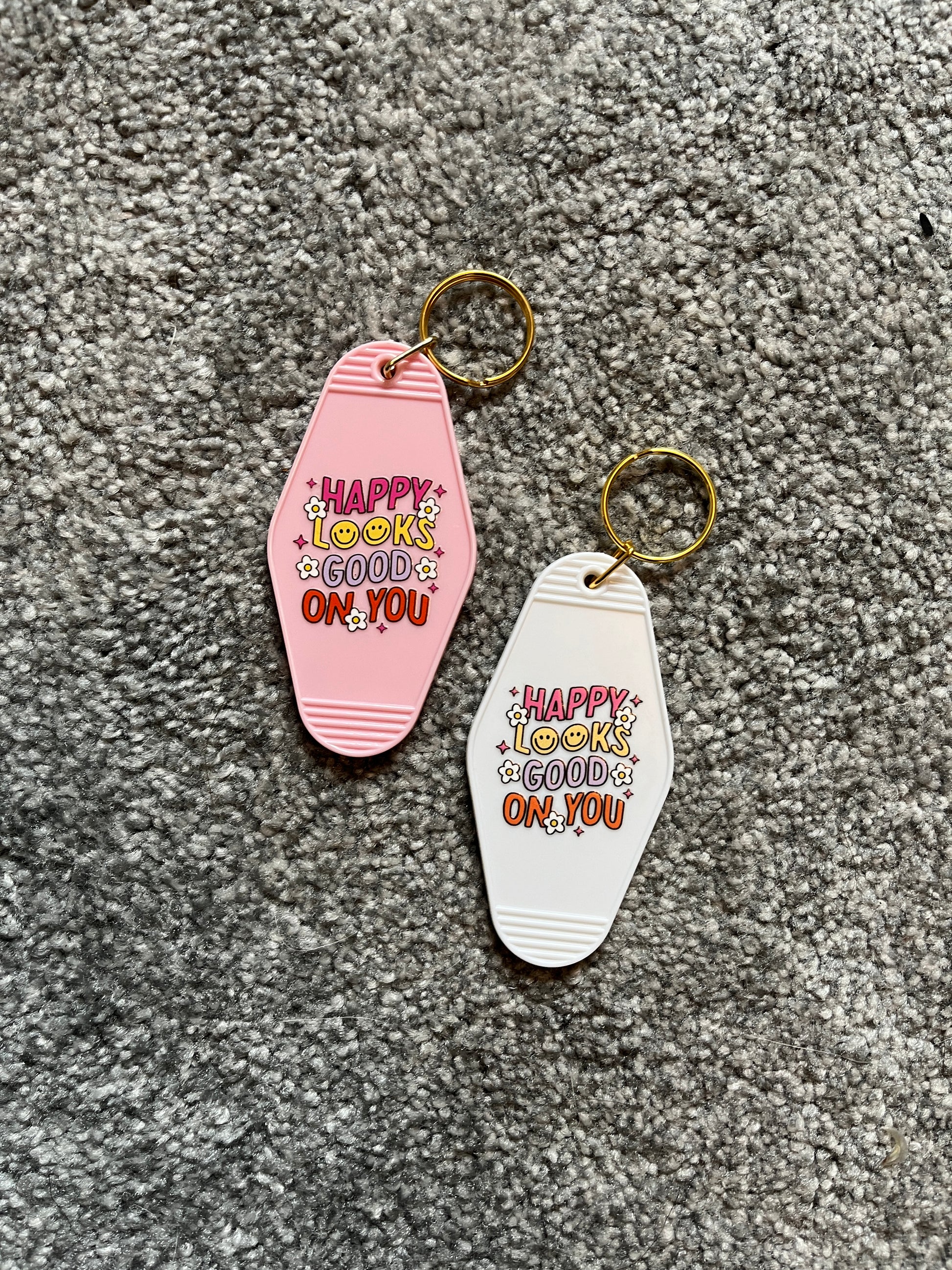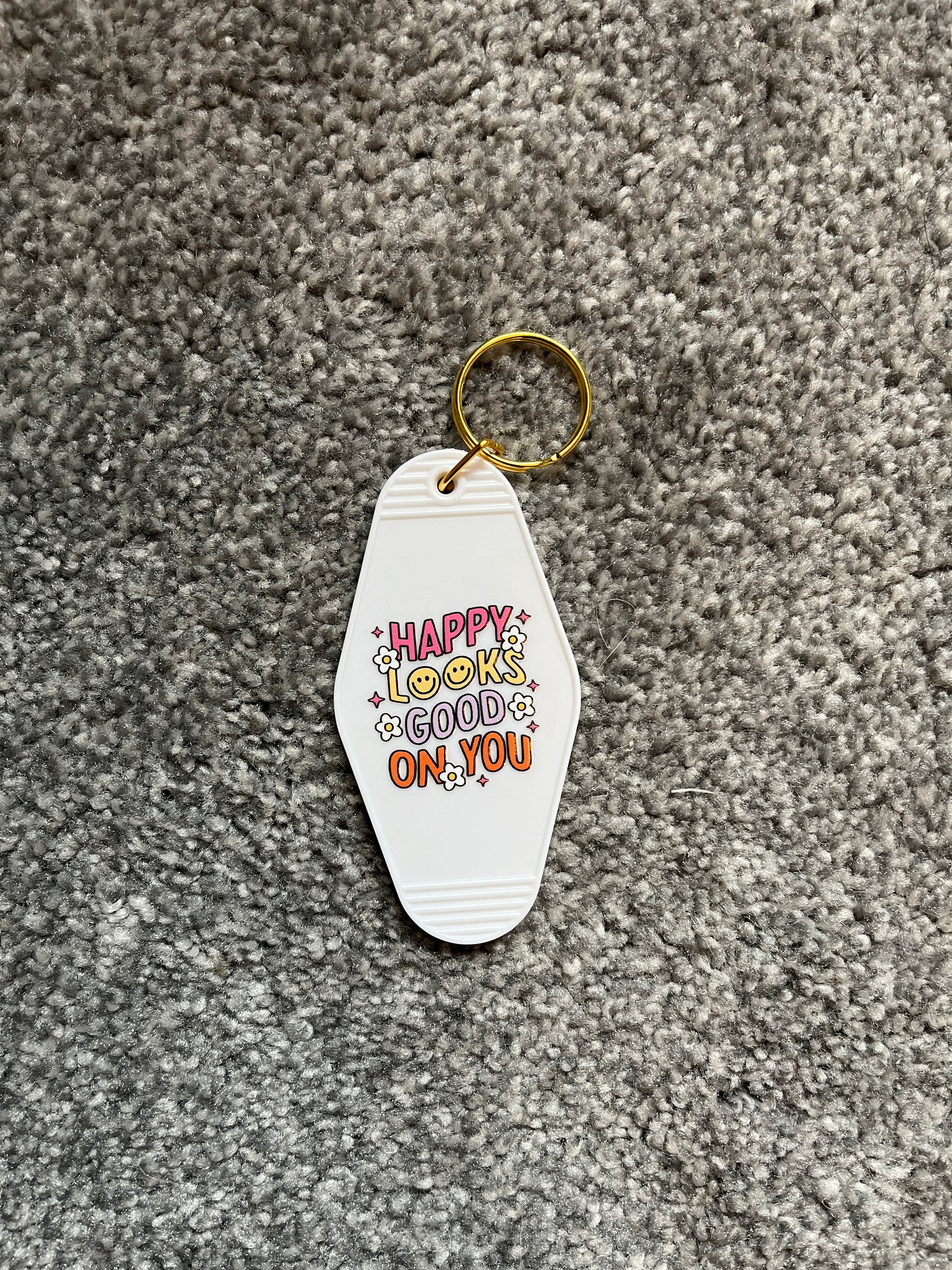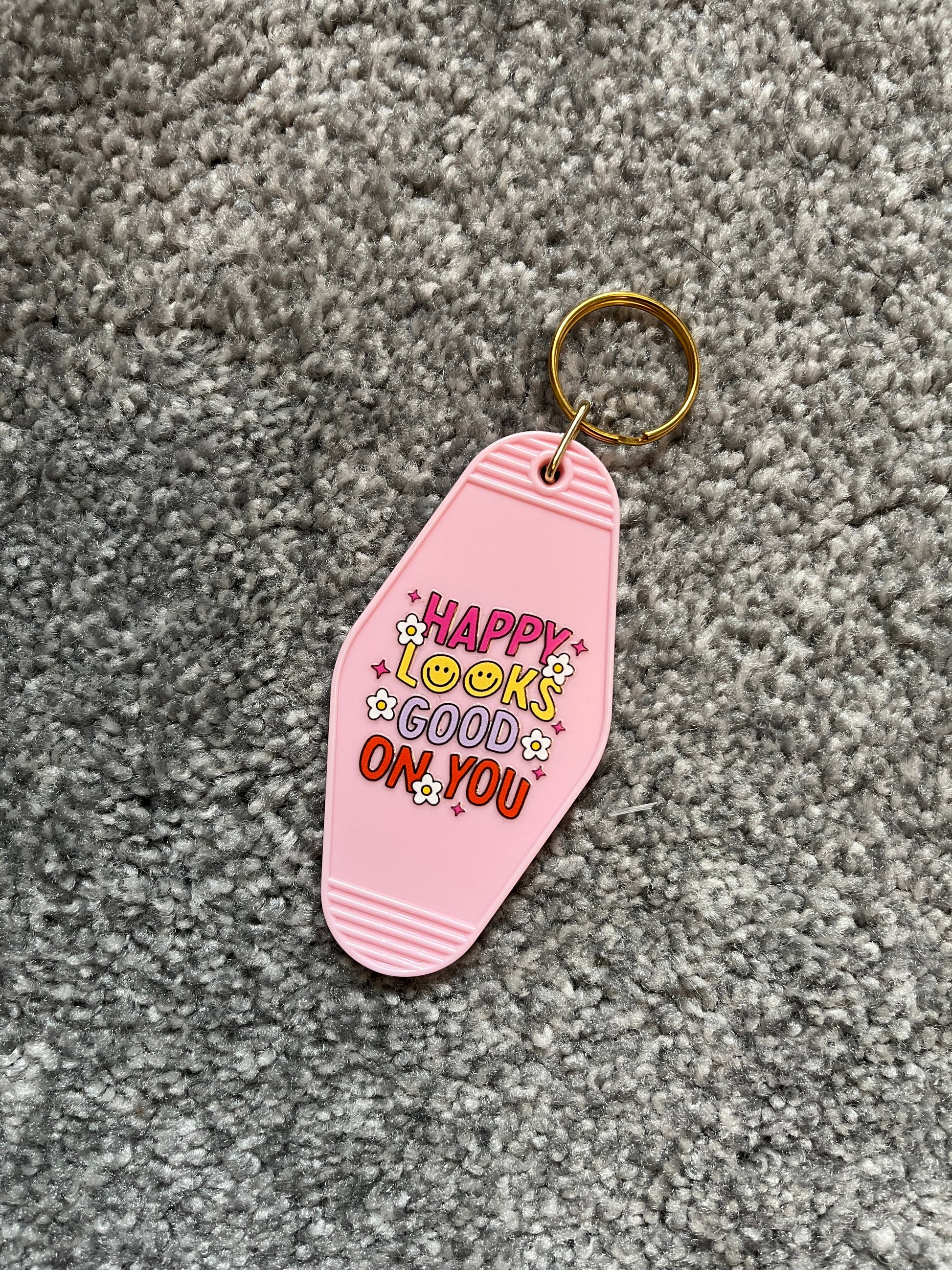 I couldn't put this design just on a glass, so it's now on a keyring too! Remember, happy looks good on you, so keep going 🩷