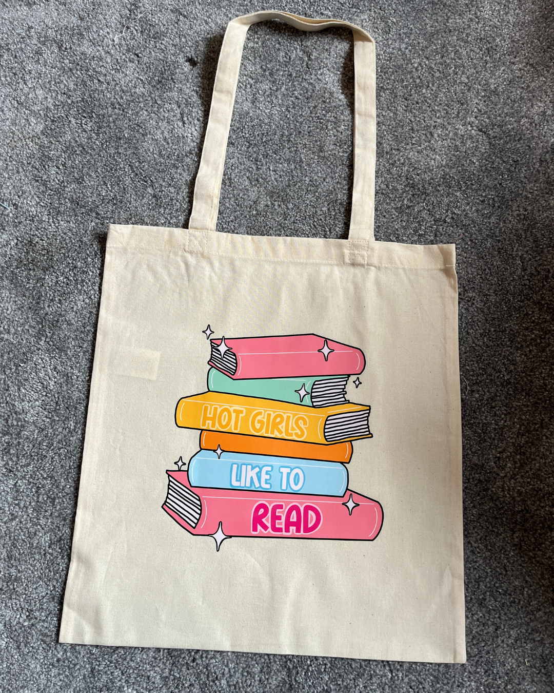This 100% cotton tote bag can fit in everything you need; a laptop, tumbler, and most importantly the books!