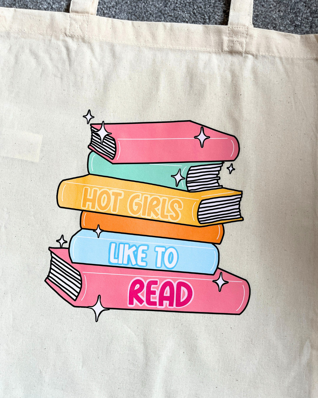 At first, it looks like a cute pile of books, but the hidden message of "Hot Girls Like To Read" is there if you look carefully!