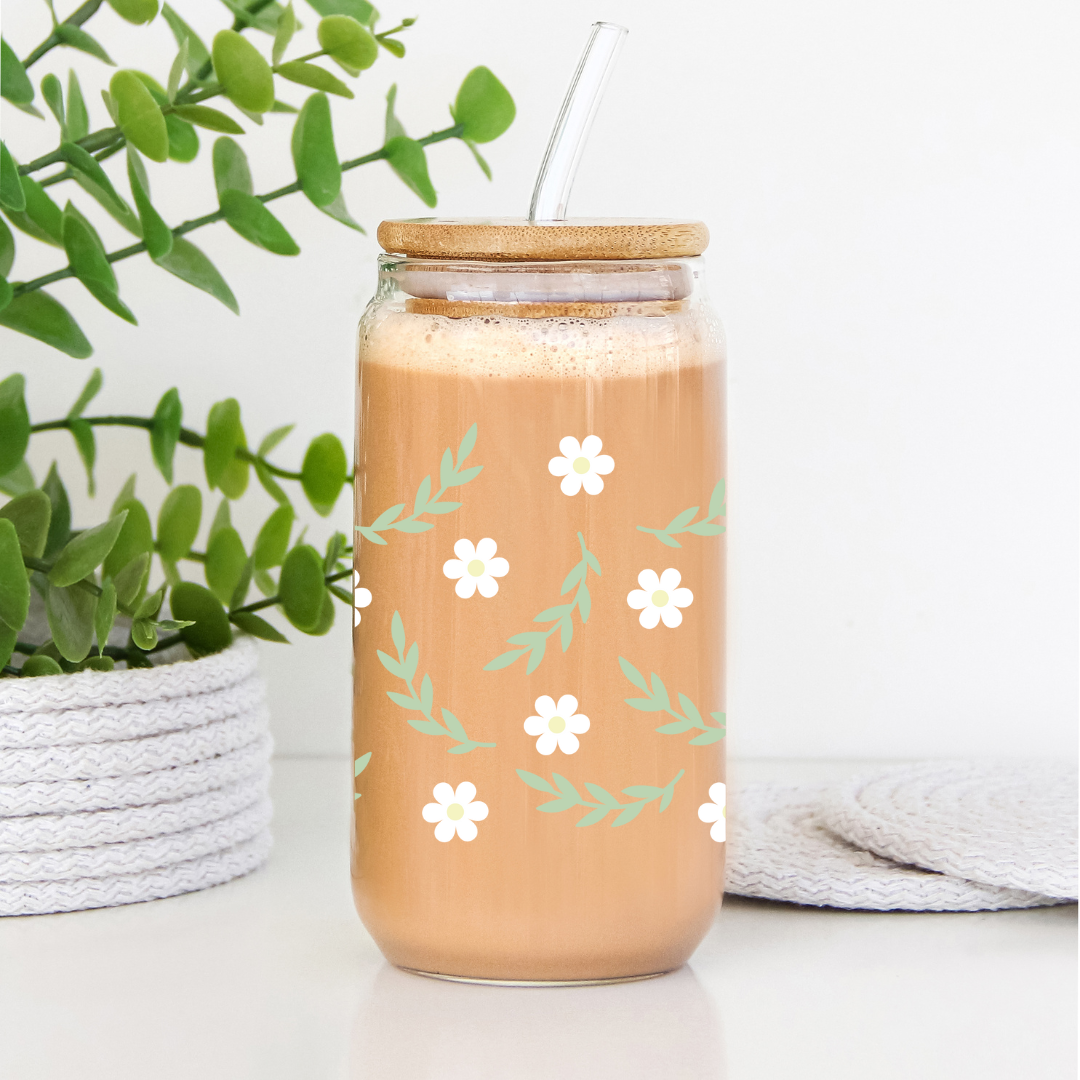 I don't even care that it's raining outside if I have this adorable laurel and daisy glass can to drink out of.