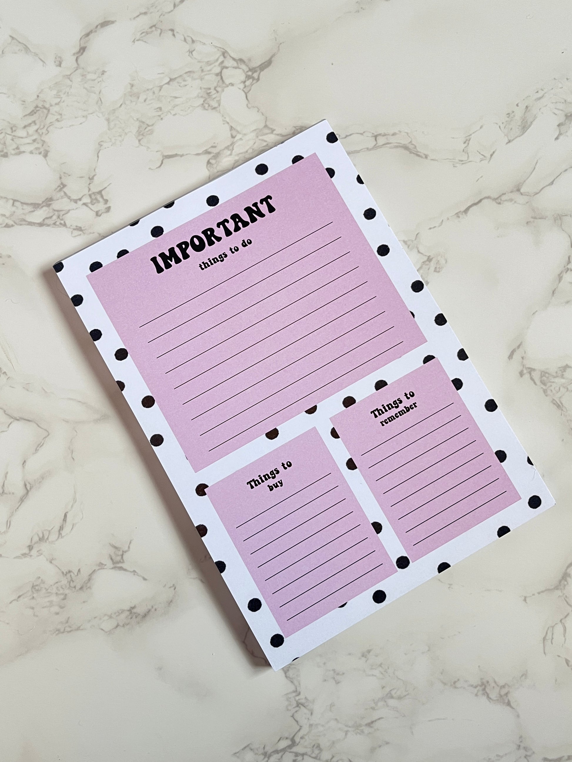 Sometimes, you just need to get everything out of your head and onto paper, and that's where this pink polka dot desk pad comes in. With spaces for your important things to do, things to buy and things to remember, your day will feel a little easier.
