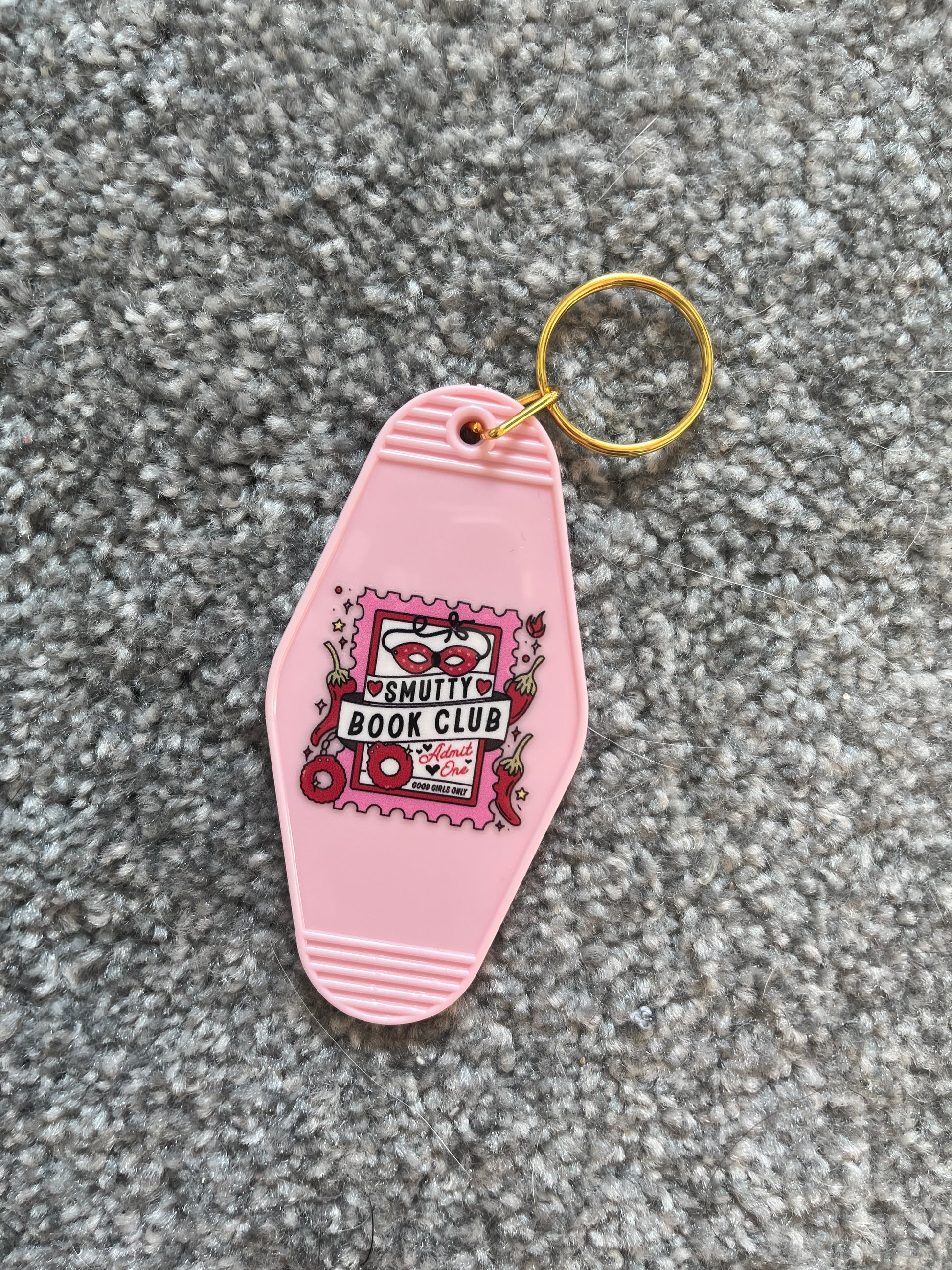 Join the sauciest reading group in town with our Smutty Book Club keyring! Keep your keys secure (and your love of romance novels public) with this playful pink keyring featuring eye-catching gold hardware.