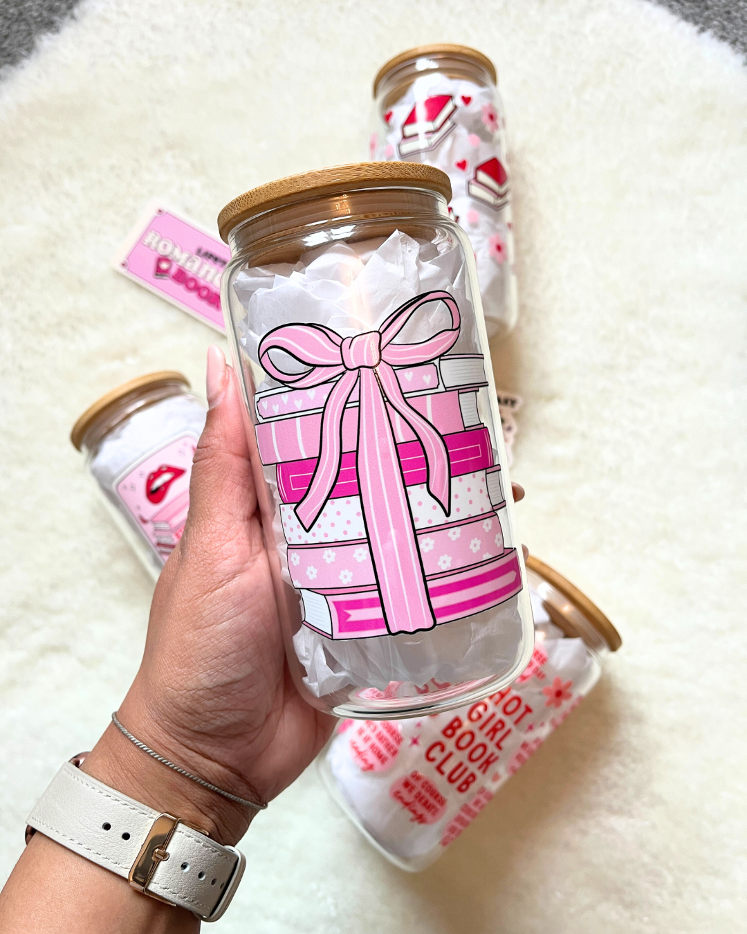 It's not going to be a Manor+Breeze Valentine's launch without the cutest pink book stack on a glass can!